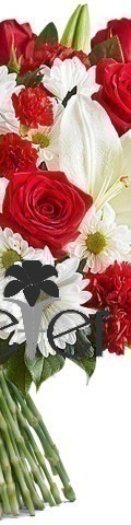 8 x Red Roses, 4 x White Lilies, 8 x Red Spray Carnations, White Chrysanthemums