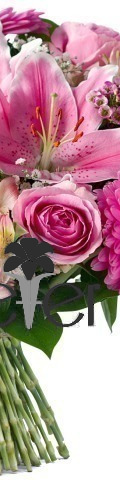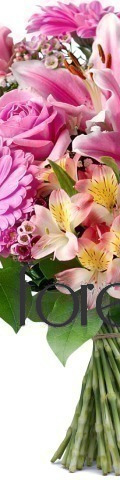 5 Pink Roses, 2 Pink Stargazer Lilies, 3 Pink Gerbera, Pink Alstroemeria