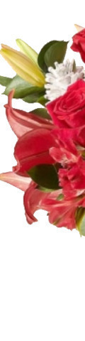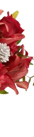 6 Red Roses, 4 Red Lilies, Red Alstroemeria, Pinecones