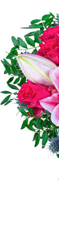 6 Pink Roses, 4 Pink Lilies, 2 Purple Calla Lilies, Eryngiums, Pinecones